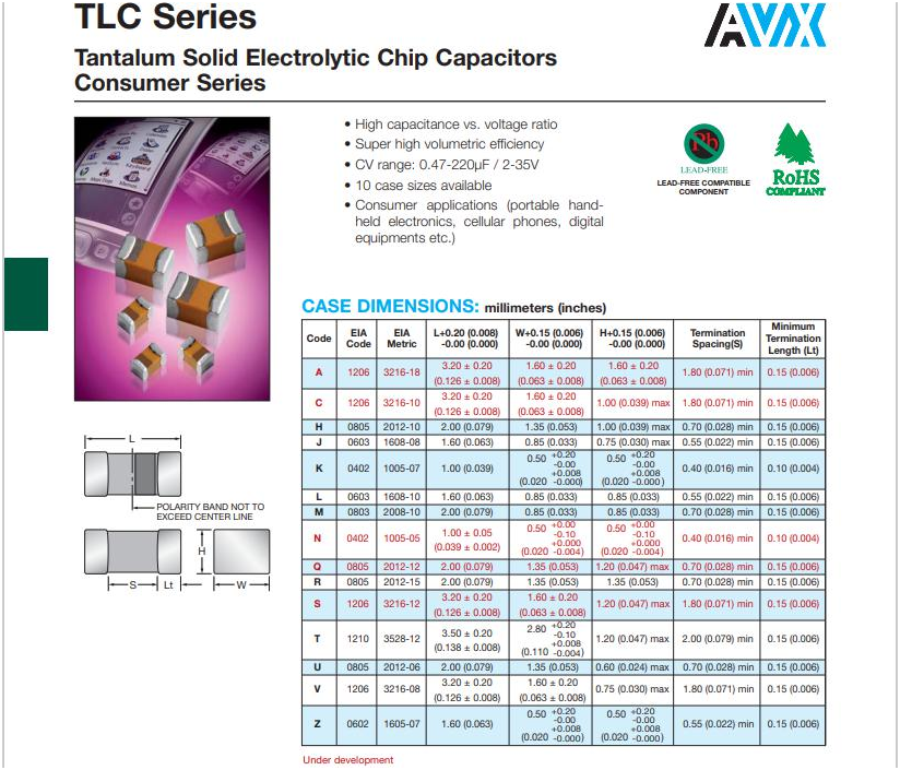 avx貼片電容型號(hào)尺寸詳解圖如下
