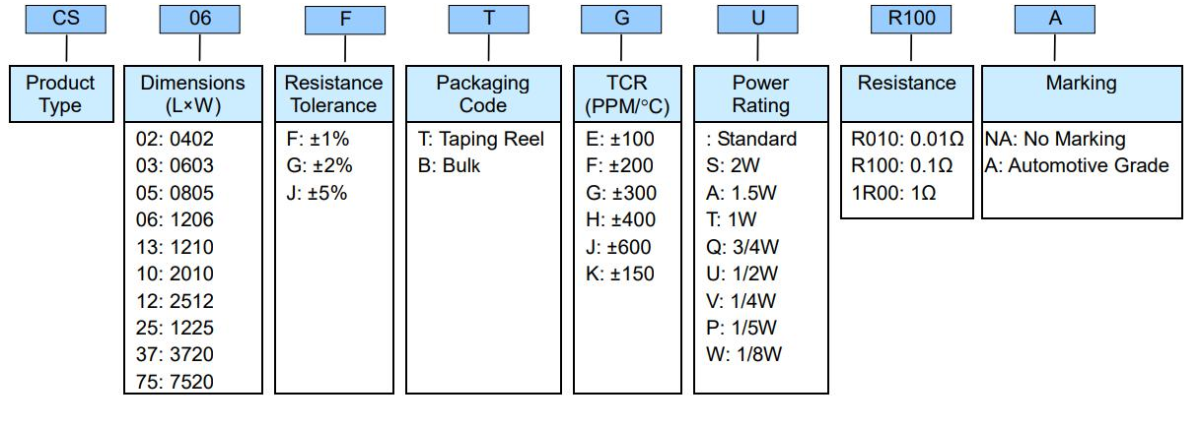 光頡(viking)電阻料號命名識別圖如下